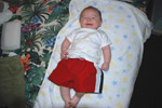 His first swimming trunks |