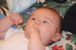 Sucking on his fist |
