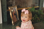 Bella in front of a picture of her Great Grandparents |